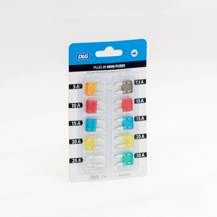 Zestaw dziesięciu mini bezpieczników płytkowych, idealnych do zabezpieczenia układów elektrycznych w samochodach osobowych, dostawczych i w innych pojazdach. Bezpieczniki typu MINI stosowane są najczęściej w skrzynkach bezpieczników pojazdów o napięciu 12 V (czasem także w układach 24 V), do ochrony obwodów takich jak oświetlenie, elektronika pokładowa, wycieraczki itp.