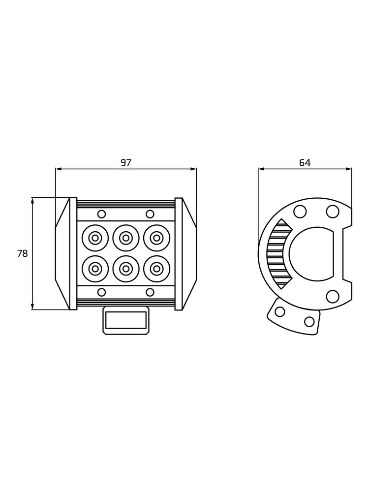 Lampa robocza LED 6×3W 12/24V 18W 1200lm 6000K to wysokiej jakości oświetlenie robocze, idealne do maszyn rolniczych, budowlanych, pojazdów terenowych oraz innych zastosowań wymagających niezawodnego źródła światła.
